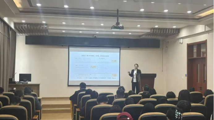 宣讲团成员张萌老师以“十五五”规划为核心展开讲解。她先引导师生准确把握“十五五”的历史方位与总体要求,明晰发展所处的时代坐标与前行方向;再深入解读规划擘画的宏伟蓝图和战略部署,系统阐释各领域的发展目标与实施路径;最后号召全院师生勇担时代使命,将个人理想融入国家发展大局,以实际行动为奋力开创中国式现代化新局面注入青春力量。