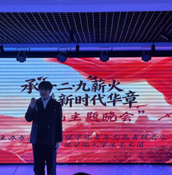 晚会紧扣“一二·九”精神内核,以艺术形式重温峥嵘岁月。学生组织主席团的铿锵合唱拉开序幕,活动部的动感舞蹈尽显青年蓬勃朝气。随后,《灯火里的中国》《如愿》等歌曲温情演绎,旋律中满含对祖国的深情告白与对先辈的崇高敬意。朗诵节目《经管暖行:黑河畔的守护之光》,既讲述了学子扎根边疆、服务地方的志愿故事,更将个人理想融入时代洪流,呼应“一二·九”运动中青年与国家命运紧密相连的精神传统,让红色历史在艺术表达中实现情感化传递。