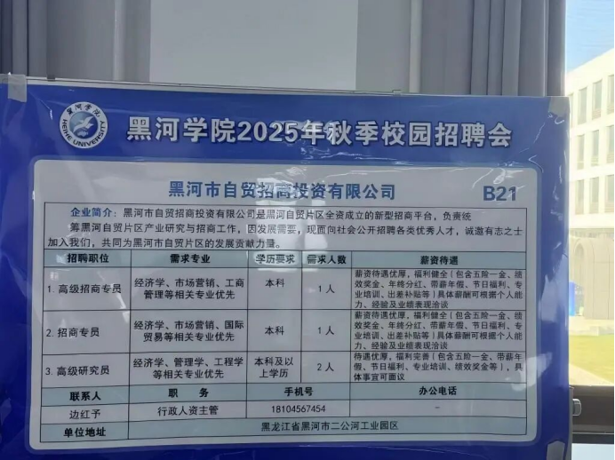 -亮点:新型招商平台,统筹黑河自贸片区产业研究与招商工作,四发展需要,现面向社会公开招聘各类优秀人才。